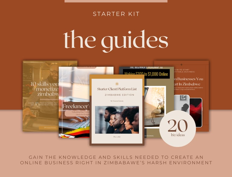 The Starter Kit is your no-frills, easy-to-follow guide to getting started online with zero resources. Learn how to monetize your skills and start earning right away, all tailored to the Zimbabwean market. This kit will help you take the first step without overwhelm.